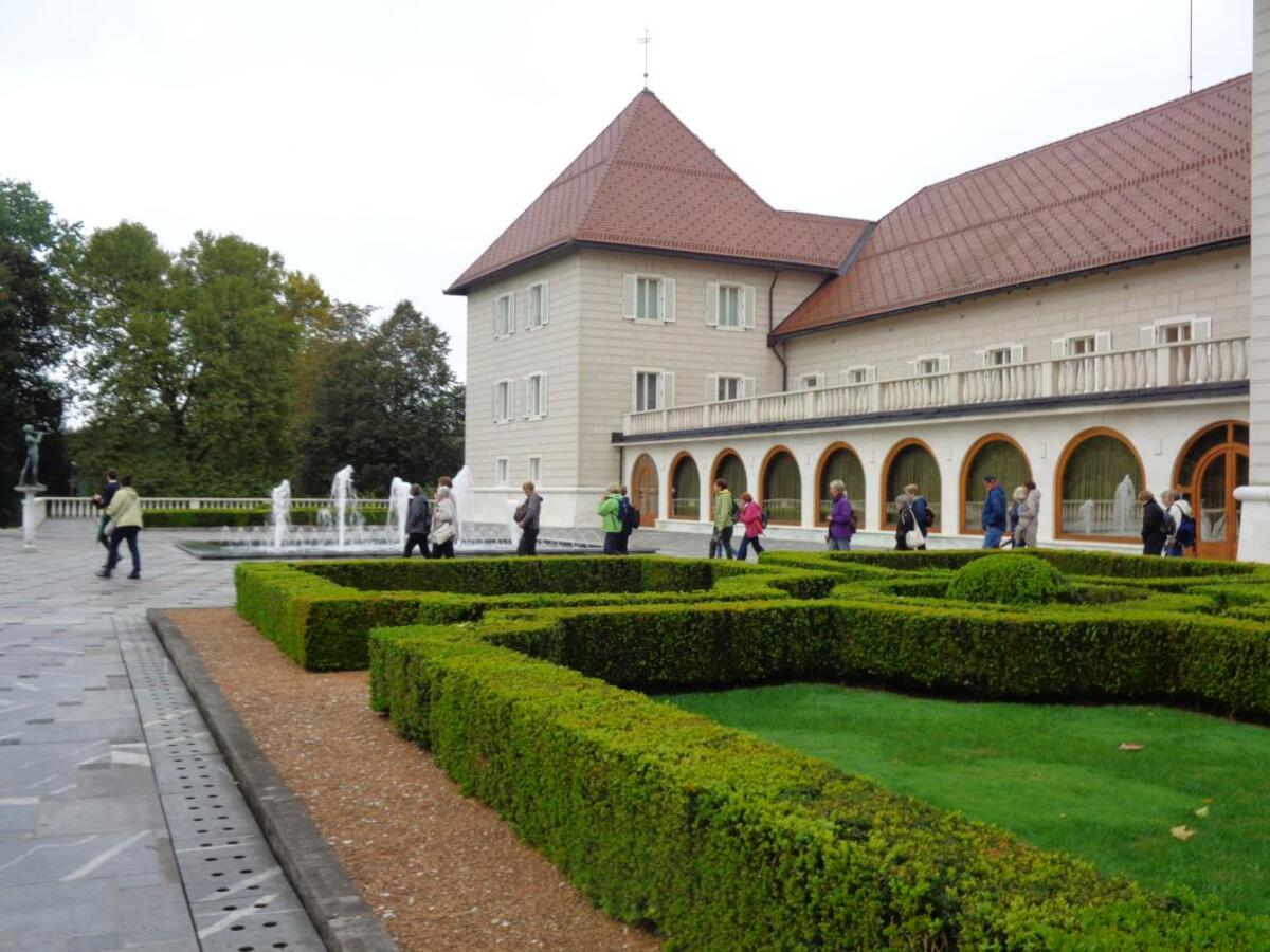 Že v hotelski kavarni smo uzrli fotografije pomembnejših obiskovalcev Brda, največ družine Karađorđevič in kasneje Josipa Broza - Tita. Ob peščeni poti so nameščene informativne table s podatki o pomembnejših srečanjih na tem prostoru, ki so ustvarjala zgodovino (z obiski G. W. Busha, V. Putina in drugih). Dež nam je med sprehodom po prelepem, natančno vzdrževanem parku (skoraj) prizanesel, tako da smo si lahko ogledali drevorede, jezerca, mostičke, kipe, a smo si na koncu vendarle obljubili, da se v park vrnemo v maju, ko naj bi se kostanjev drevored rožnato obarval.