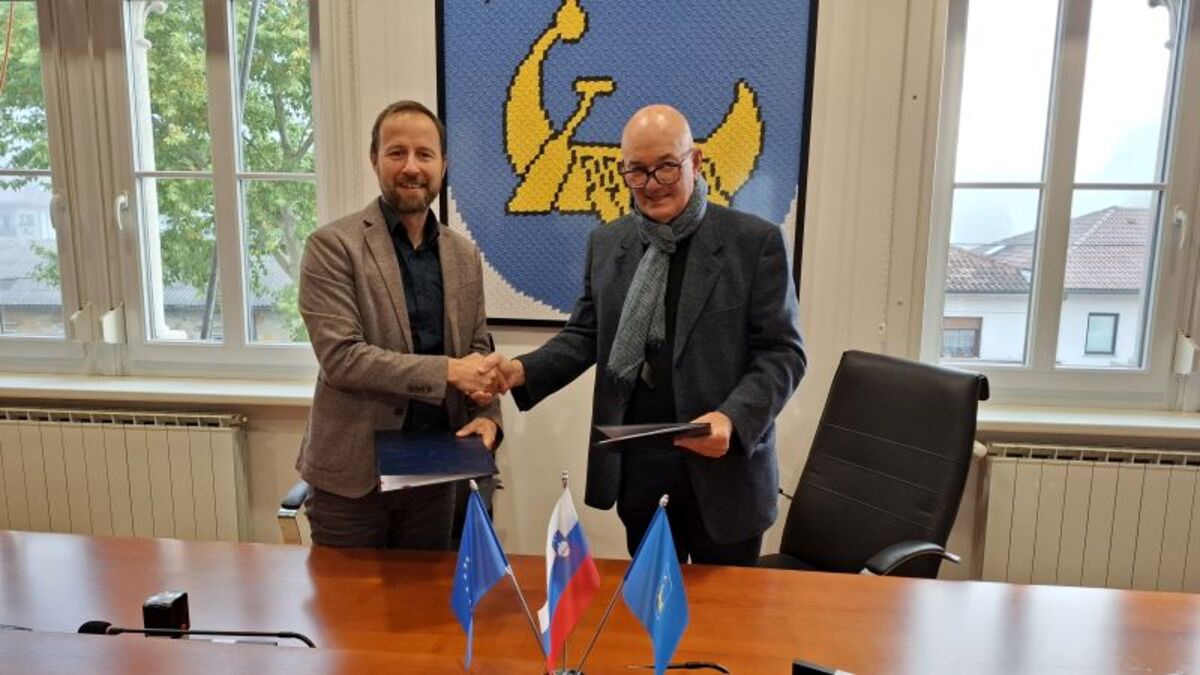 Župan dr. Gregor Kovačič in izr. prof. Leon Belušič, vodja skupine arhitektov, ki je zmagala na arhitekturnem natečaju Zbornice za arhitekturo in prostor Slovenije, sta podpisala pogodbo o izdelavi projektne dokumentacije za gradnjo stanovanjske soseske Pod hribom. Kompleksna priprava dokumentacije bo potekala v letu 2026, leta 2027 pa lahko pričakujemo začetek gradnje prvih 55 do 60 stanovanj.