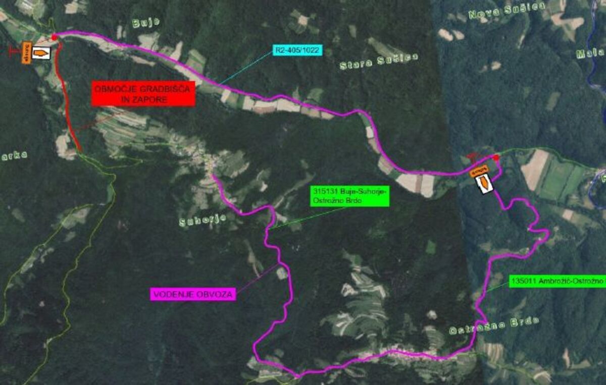 Popolna zapora cest Buje - Suhorje - Ostrožno Brdo in Pregarje - Zajelšje