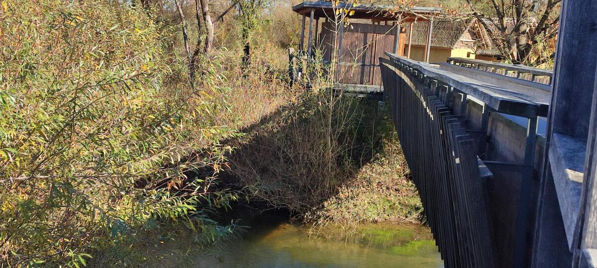 Do muzeja na prostem je približno dvajset minut zmerne hoje, sprva po široki makadamski cesti sredi barjanske ravnice, nato pa po utrjeni poti iz lesenih desk. Koliščarji so dobili ime po hrastovih kolih (pilotih), ki so jih prišleki že 5000 let pred n. št. začeli zabijati v mokrotna tla in na te temelje postavili svoja bivališča.
