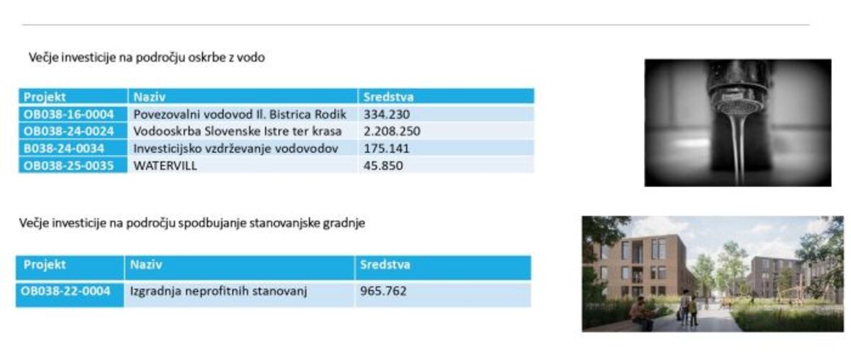 Ilirska Bistric se še z 12 občinami Istre, krasa in Brkinov pripravlja na izgradnjo povezovalnega vodovoda za vodooskrbo Istre in hkrati prenovo obstoječih vodovodnih omrežij po občinah. Gre za projekt, ki bo izdatno podprt z evropskim denarjem. Prihodnje leto je v proračunu bistriške občine za ta namen predvidenih 2,2 milijona evrov.