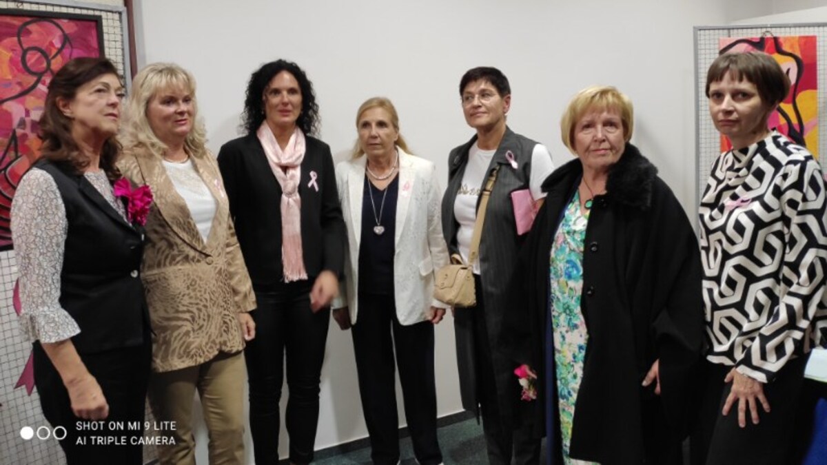 V osrednjem, strokovnem delu, so spregovorile zdravnice, ki so ponudile dragocen vpogled v odkrivanje in zdravljenje raka: Andreja Vinšek Grilj, dr. med. (strokovna vodja naše skupine za samopomoč), Jadranka Vrh Jermančič (specialistka patologije in citologije) in Danica Hrvatin (specialistka ginekologije in porodništva). Glavna tema pogovora je bil ključni pomen zgodnjega odkrivanja bolezni in moč podpore pri soočanju z diagnozo. Njihovo skupno sporočilo je bilo jasno in neposredno: »Preventiva ostaja naše najmočnejše orožje v boju proti raku.« Dogodek je z osebno noto dopolnila tudi Damjana Benigar Kaluža, članica Skupine za samopomoč. Njena onkološka izkušnja jo je naučila ceniti življenje in povezanost med ljudmi. Predstavila je svoja likovna dela z naslovom »Bodi ženska, bodi zdrava«. Slike s toplino in iskrenostjo spodbujajo k pogumu in hvaležnosti za življenje.
