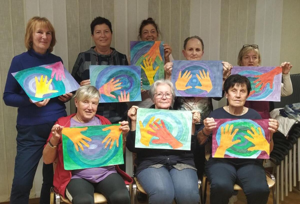 V okviru rožnatega oktobra smo se udeležile tudi slikarske delavnice v organizaciji VGC Ljudska univerza Ilirska Bistrica, ki je ohranila lanskoletni naslov Bodi ženska, bodi zdrava, ustvarjaj z mano, izvedla pa jo je naša članica Damjana.