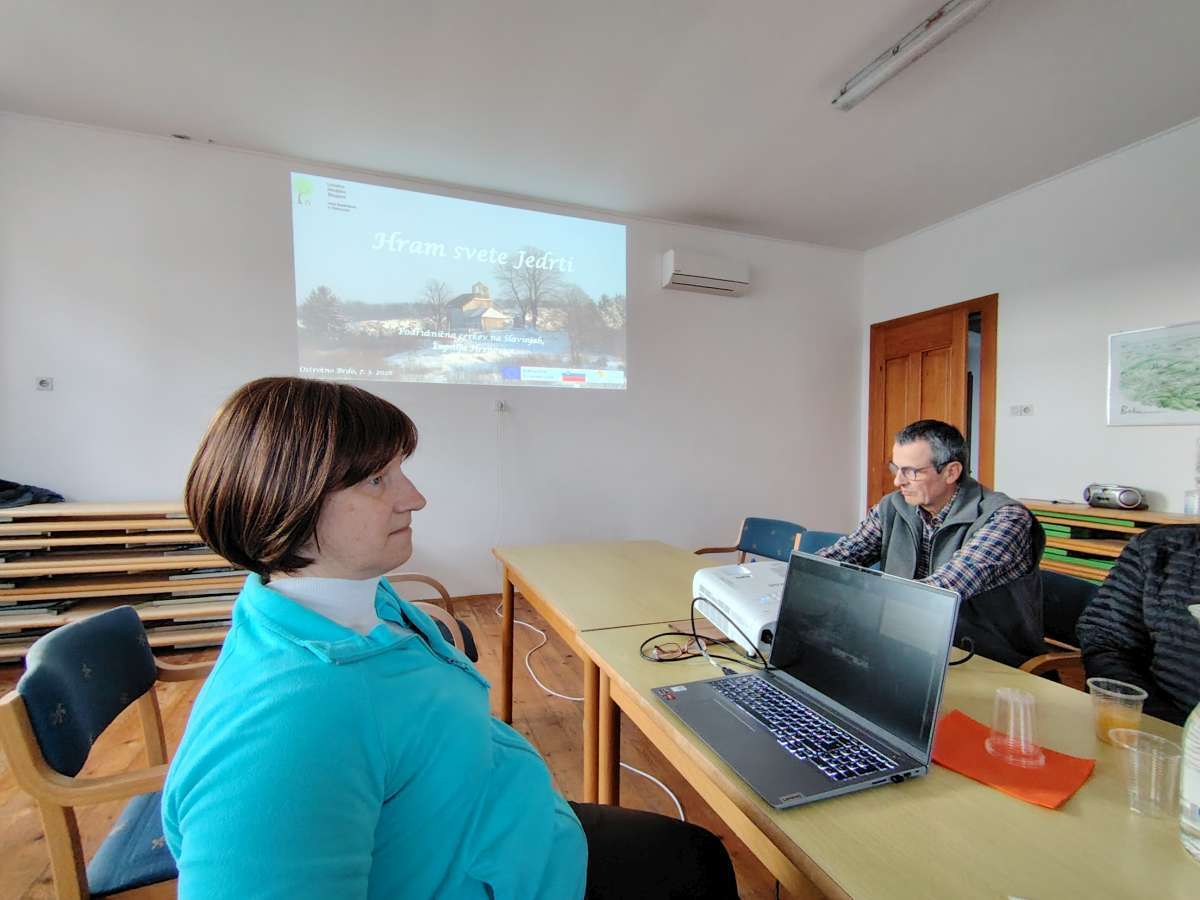 Predstavniki Župnije Hrenovice so projekt v marcu predstavili krajanom Ostrožnega Brda, ki so tako preko slik dobili vpogled v potek projekta ter predstavo o dogodkih in namenu aktivnosti. Poleg obnove cerkve je bil predmet projekta tudi vzpostavitev muzeja na prostem, opremljenega z info tablami ter prostorom za druženje in igro. S seboj so prinesli tudi dve stari igri - »vokuco in triglco«, ki sta sicer del muzeja na prostem. In se seveda odigrali nekaj partij.