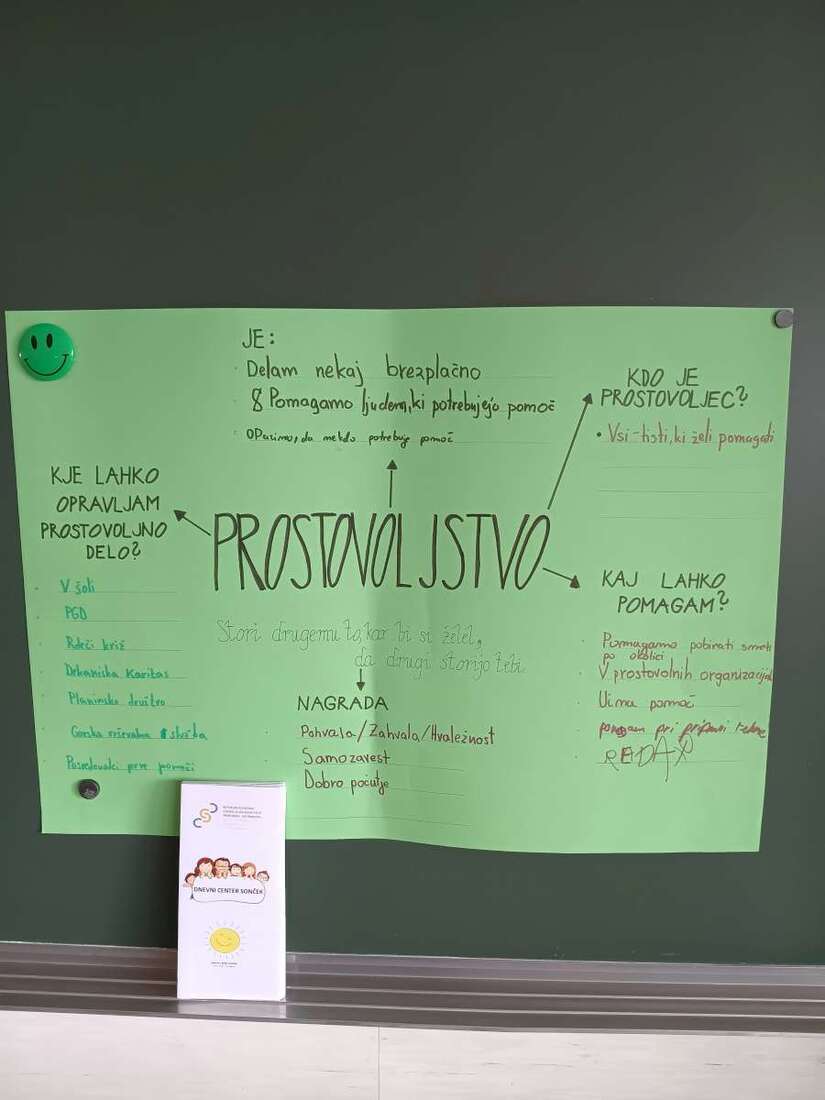 Sodelavke Dekanijske karitas in Dnevnega centra Sonček, ki deluje v okviru Centra za socialno delo Ilirska Bistrica, smo se povezale in pripravile delavnice o tej pomembni dejavnosti za učence sedmih razredov. Na njih skupaj raziskujemo, kaj mladi že vedo o prostovoljstvu, kaj to pomeni ter komu vse prinaša dobrobit. Eno od vprašanj je tudi, ali si prostovoljec, če pomagaš pri domačih opravilih ...