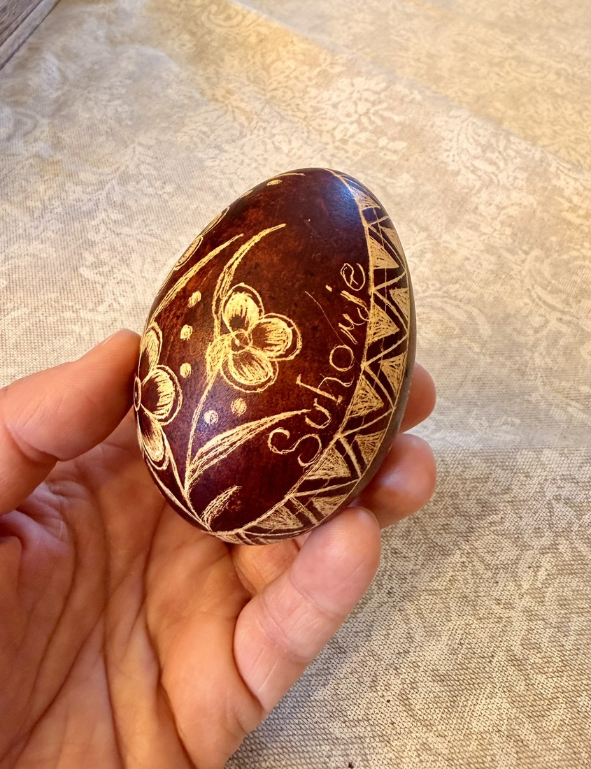 Udeleženci so najprej spoznali zgodovinski razvoj suhorskih pirhov ter postopke njihove izdelave, vključno s tehniko barvanja jajc in značilno tehniko praskanja, pri kateri z ostrim nožkom odstranjujemo barvno plast ter ustvarjamo fine, kontrastne vzorce. V praktičnem delu delavnice so se udeleženke ob pomoči olfa nožkov, barvanih pirhov ter lastne domišljije preizkusile v tej ustvarjalni tehniki. Nastali so čudoviti, unikatni pirhi, ki so jih udeleženke z zadovoljstvom odnesle domov.