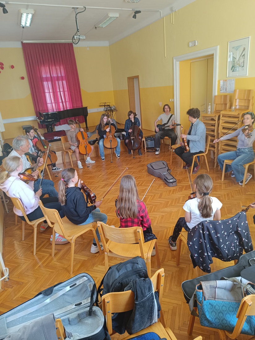 Na Glasbeni šoli Ilirska Bistrica se je 17. in 18. aprila 2026 odvila zelo zanimiva delavnica za godala. Uvodno petkovo predavanje in dvodnevno vikend skupinsko delavnico sta vodila člana znane slovenske skupine Terrafolk, Barja Drnovšek in Bojan Cvetrežnik (godalkanje.org). Delavnico “godalkanja” je naša šola že gostila pred približno desetimi leti.