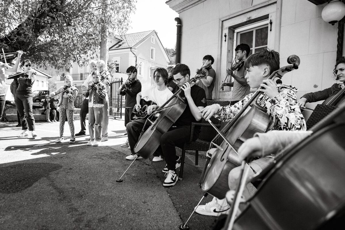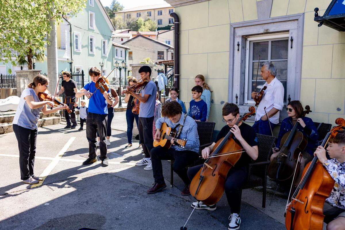 Učenci in učitelji godal in kitare so že na uvodnem predavanju slišali, kako veliko vlogo ima občutenje pulza v telesu, kako evropska folk glasba še vedno nastaja in ostaja živa med izvajalci in kakšne so metode dela po posluhu brez notnega teksta. Vse to so izkusili skozi delavnico, na kateri so se srečali tudi z osnovami improvizacije in novimi tehnikami različnih stilov violinske igre. Naučili so se angleško, francosko, albansko, švedsko ... vižo in pri tem neznansko uživali. Naučeno so obiskovalcem “bistrškega placa” prvič predstavili v dopoldanskem času, še enkrat pa z zaključnim nastopom na terasi Gostilne Triglav, kjer so poželi bučne aplavze.