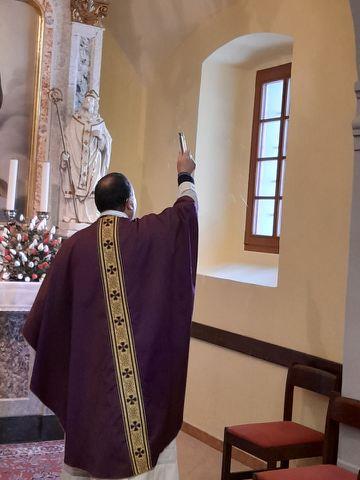 Ko smo na adventnem venčku prižgali drugo svečo, je župnik Stanko Fajdiga blagoslovil nova okna v cerkvi sv. Štefana v Harijah. Po stari navadi so se vaščani zbrali na likofu.
