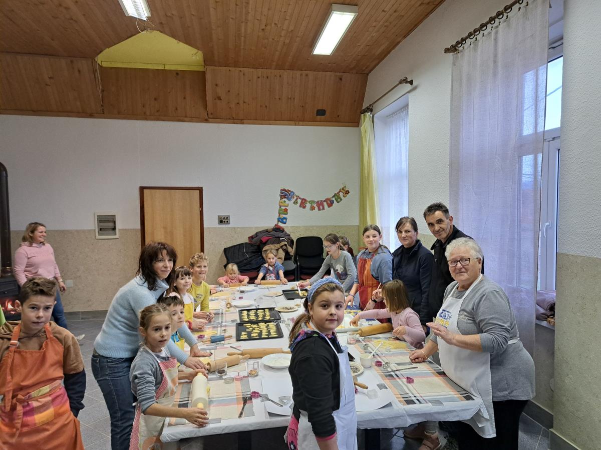 Prihod prvega dobrega zimskega moža je od nekdaj spodbujal otroško domišljijo in še danes velja, da če se pred Miklavževim prihodom na nebu izriše rdeča zarja, takrat dobrotnik zagotovo peče piškote za pridne otroke. Da bi mu vsaj nekoliko olajšali delo, so se harijski otroci na povabilo mentorice Dijane Valenčič, lansko leto že drugič zbrali v vaškem domu in spekli Miklavževe piškote: slastne, omamne, medene…. Čas, dokler s pečice ni zadišalo, pa so namenili izdelovanju adventnih venčkov. Žiga in Luka Boštjančič sta razpotegnila harmoniki. Neža Mežnar je izvabljala nežne glasove na strunah violine.