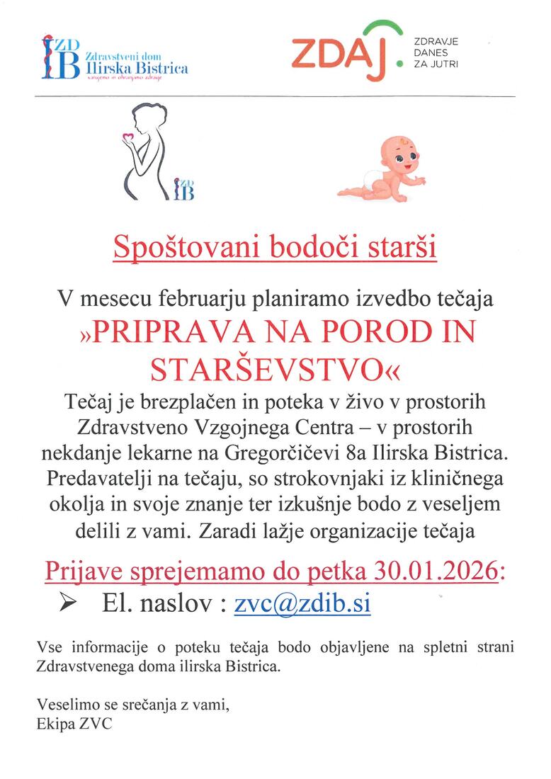 Prijave na tečaj "PRIPRAVA NA POROD IN STARŠEVSTVO"